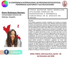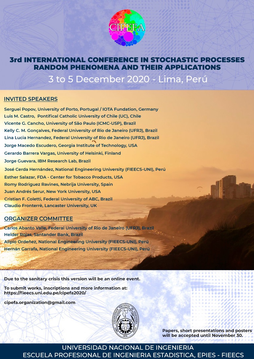 Charla impartida en la III CONFERENCIA INTERNACIONAL DE PROCESOS ESTOCÁSTICOS, FENÓMENOS ALEATORIOS Y SUS APLICACIONES. Organizada por la Universidad Nacional de Ingeniría (UNI) de Lima Perú.