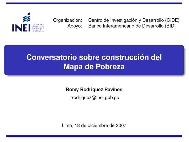 Charla con Consultores del Instituto Nacional de Estadística e Informática de Perú (INEI), organizado por el Centro de Investigación y Desarrollo (CIDE) y financiado por el Banco Interamericano de Desarrollo (BID)